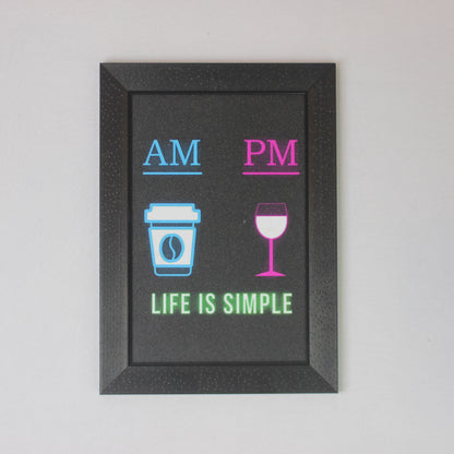 Keep life easy, balanced, and stylish with this modern AM–PM Life Is Simple wall art frame. Featuring a clean, minimalist design that perfectly captures daily routine goals—coffee in the morning and wine in the evening—this artwork is made for people who love simplicity with a hint of humor.